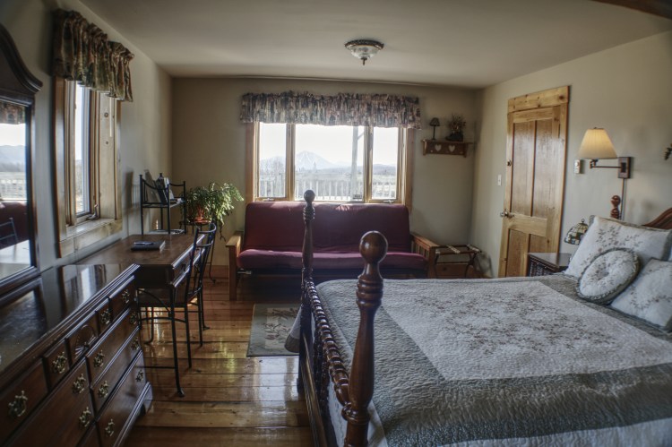 Cette troisième chambre offre un confort douillet et un décor champêtre. Ses teintes chaleureuses vous garantissent un réveil tout en douceur. Sa fenêtre donne vue sur l’abbaye Saint-Benoît-du-Lac avec, comme toile de fond, le lac Memphrémagog et le mont Owl’s Head.
